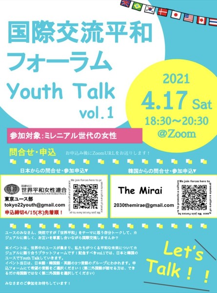 ということで、WFWP東京ユースで国際交流平和フォーラム Youth Talkを開催します。
