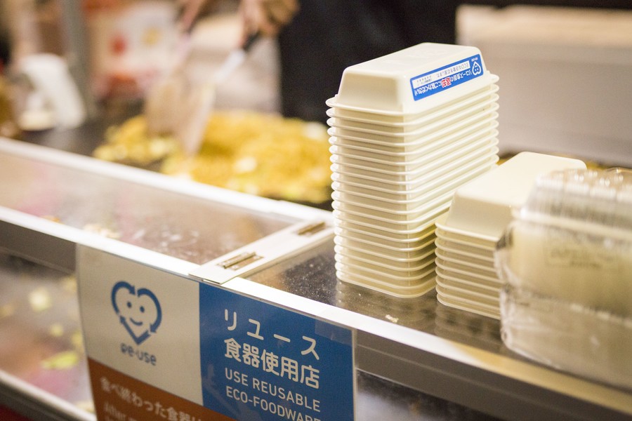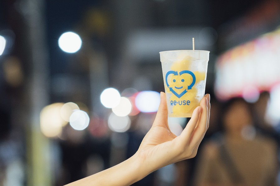祇園祭ごみゼロ大作戦は、 祇園祭の宵山において屋台等で利用される使い捨て食器を何度も洗って繰り返し使用出来るリユース食器に置き換えて、