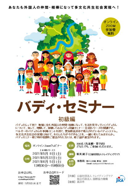 5/8、5/22、6/5 バディ・セミナー初級編(オンライン)開催 【共催】JICA中部・公益社団法人トレイディングケア ~あなたも外国人の仲間・相棒になって多文化共生社会実現へ!~外国人と共に。。。