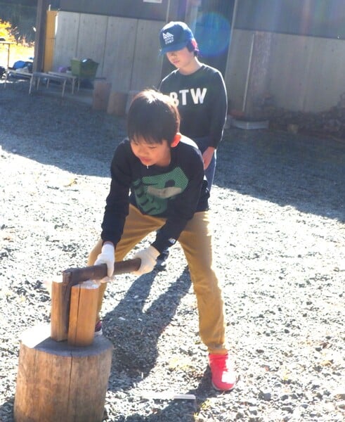 【内容】森林散策と薪割風呂焚き体験、木から作るアロマウォーターなど木とふれあう体験を行います。