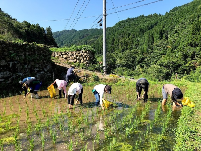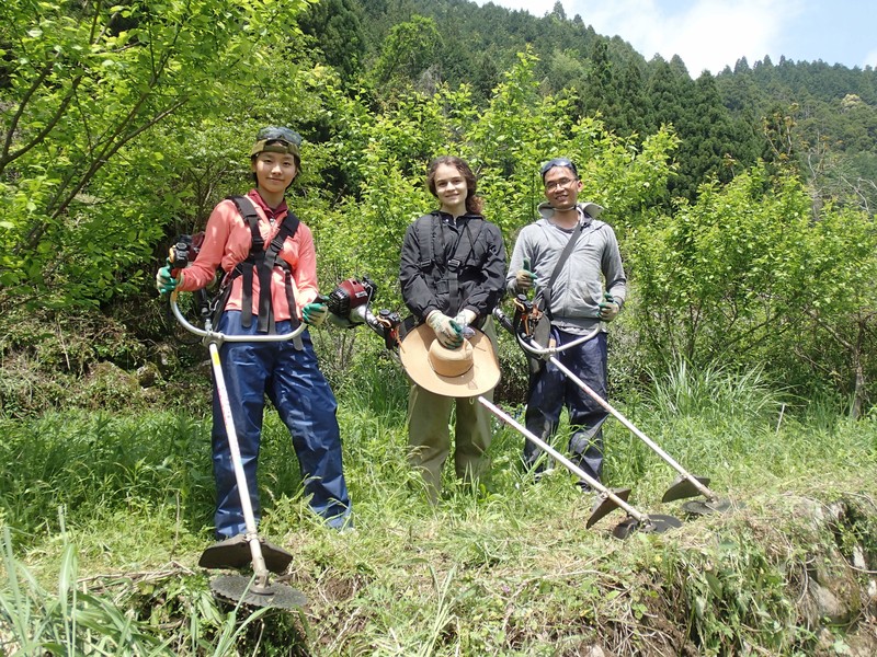 1) 2012年九州北部豪雨の被害により荒廃が進んでいる棚田の保全活動などを行う。(棚田で無農薬の米づくり(田の草取りなど)、荒廃農地で草刈り(刈払い機を使用)など。
