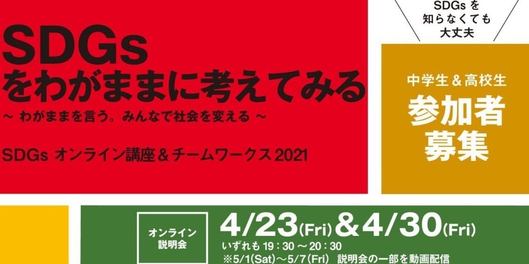- 4/30説明会開催!中高生限定!社会人と取り組むSDGsプログラム参加者募集!