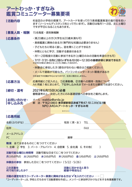 - アートわっか・すぎなみ 子どもたちと一緒にアートを楽しむ鑑賞コミュニケーター募集
