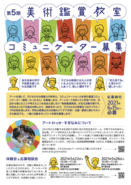 アートを通して、子どもたちの想像力や思考力、コミュニケーション力を育む、鑑賞コミュニケーター(愛称:わっかさん)を募集します。