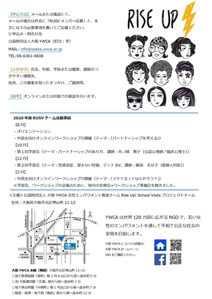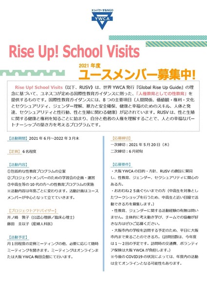 【大阪YWCA】Rise Up School Visitsメンバー募集