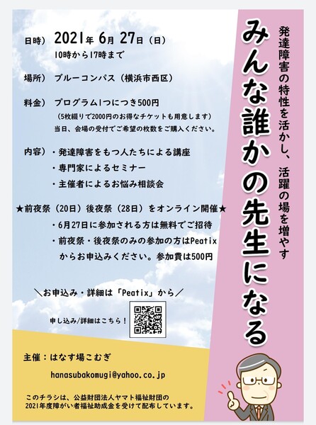 - 発達障害の方の活躍の場を増やす活動です。広報活動、イベント運営