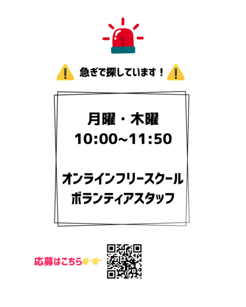 - オンラインフリースクール大学生スタッフボランティア募集!