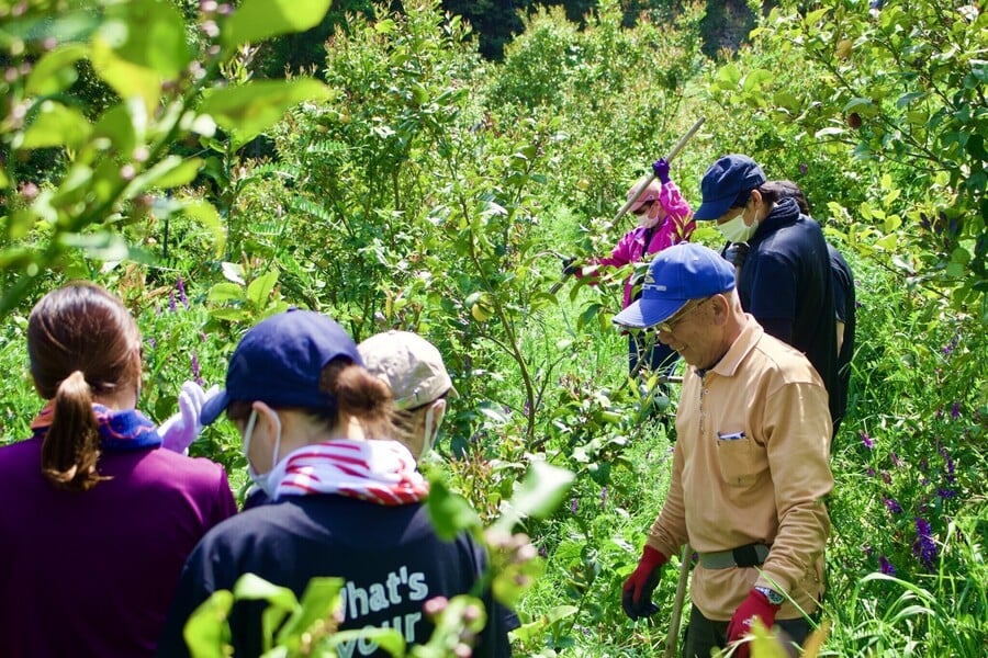 大崎下島の農家さんと一緒に、自分たちの背丈を超える程の雑草が生い茂る荒れ地の再生を目指す戦いの日々がはじまります。