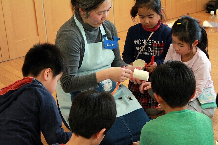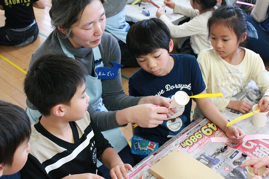 実験教室では、講師が一人にならないようにくじらのメンバーが複数で子どもたちのサポートをするので、みんなが安全で楽しく、子どもたちも「分かった」「できた」という顔をたくさん見せてくれます。