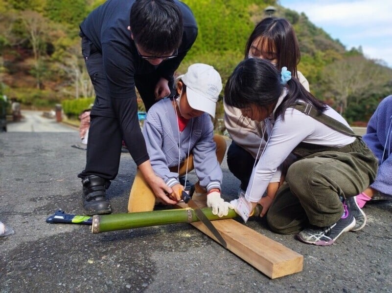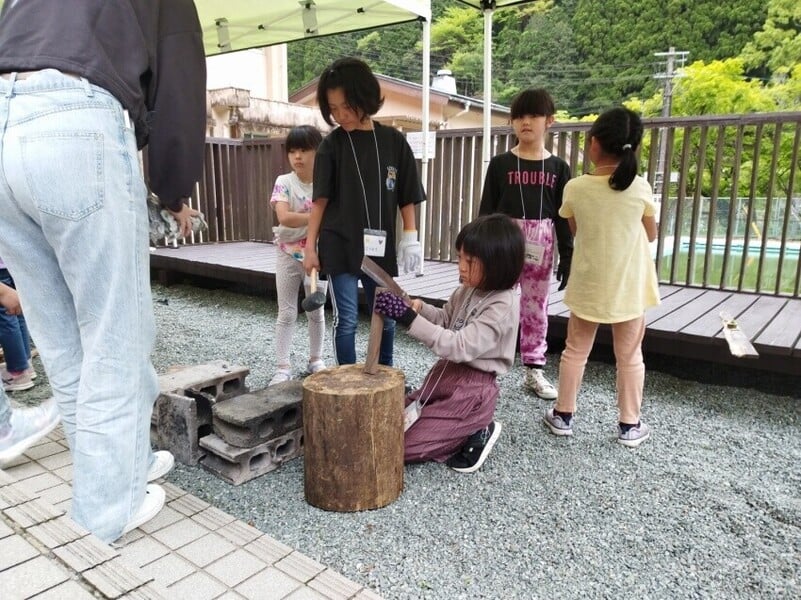 楽しい自然体験活動をきっかけに、子どもたちには「自分の力で火を起こす」、「ノコギリやナタ、小刀などの道具の使い方」、「季節の食材を使用した調理法」など、体験のなかに詰まっている知恵や技術を学び、困難な時代を生きるためのチカラを育むことを目的としています。
