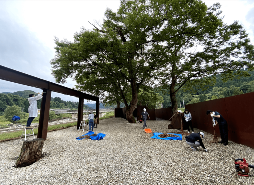 自然を舞台にした作品のため、作品候補地の草刈りや、会場となる空き家の清掃など、アーティストやスタッフと一緒に作品を制作します。