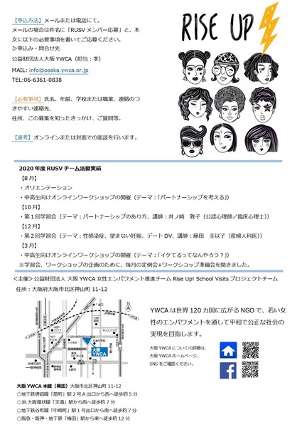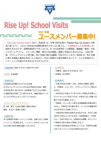 大阪YWCAの目的・方針、RUSVの趣旨に賛同し、性教育、ジェンダー、セクシュアリティ、SDGsに関心のある方 |