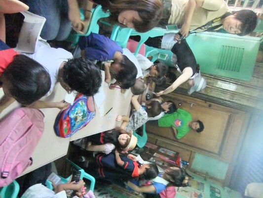 そして、スラムには、貧しくても、たくさんの笑顔があふれていました。(下の写真は火災以前のものです。寺子屋の前と、ボランティアによるクラスルームの様子です。)