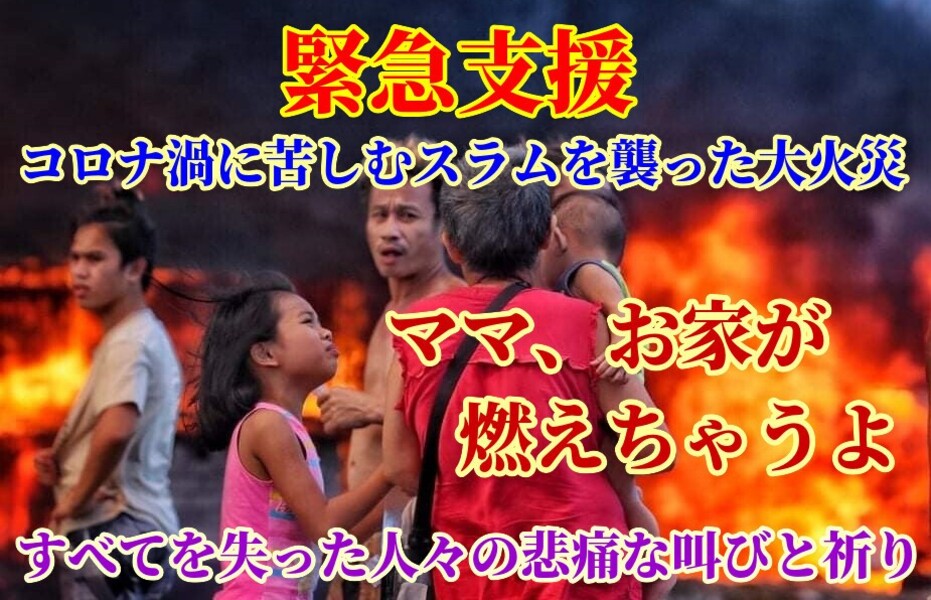 新型コロナウィルスによるロックダウンで仕事を失い、ただでさえ困難な生活を送るフィリピンのスラムを襲った大火災。その被災者の救済と被災地復興のための緊急支援に、もしよろしければ、ご協力をお願い致します。