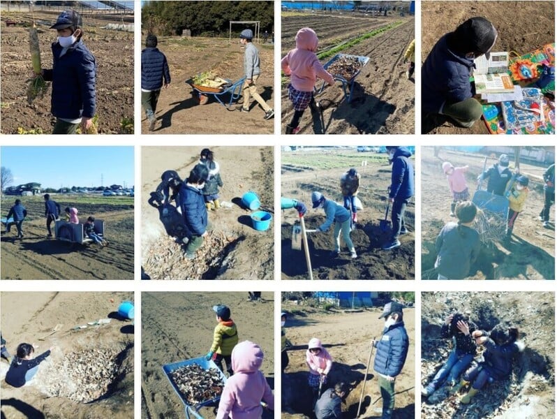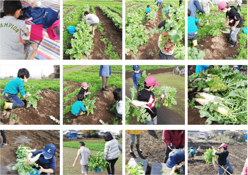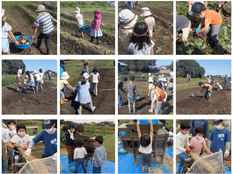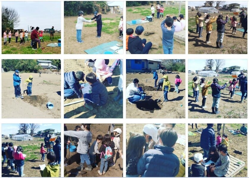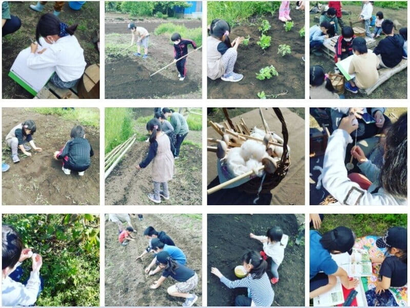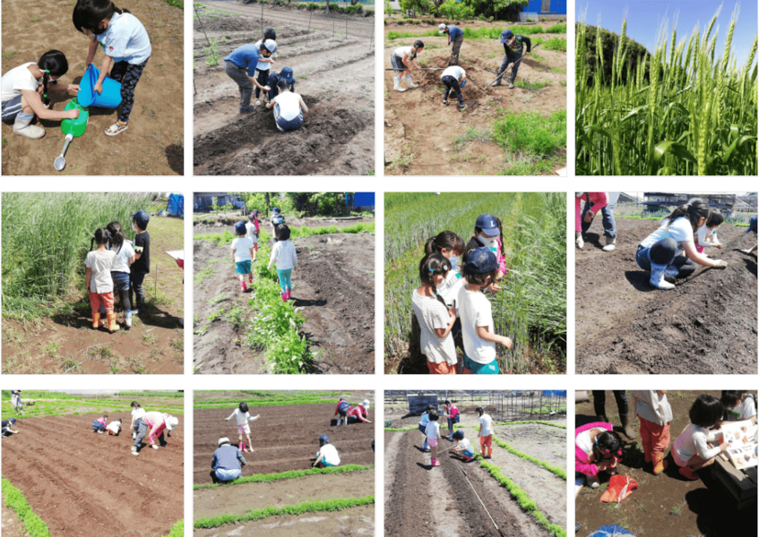 イエナプランのハートと言われる「ワールドオリエンテーション」や「異年齢グループ」、1日の流れの中で行われる4つの基本活動「対話・遊び・仕事・催し」等を体感し、ホンモノの学びとして、農園で作物を育てながら、仲間と共に「学びの場」を作る体験をしていきます。