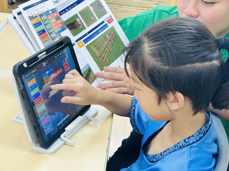 Minecraftの世界観で楽しみながら、プログラミング的思考を育むことができます。