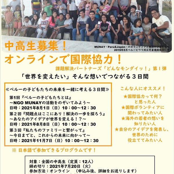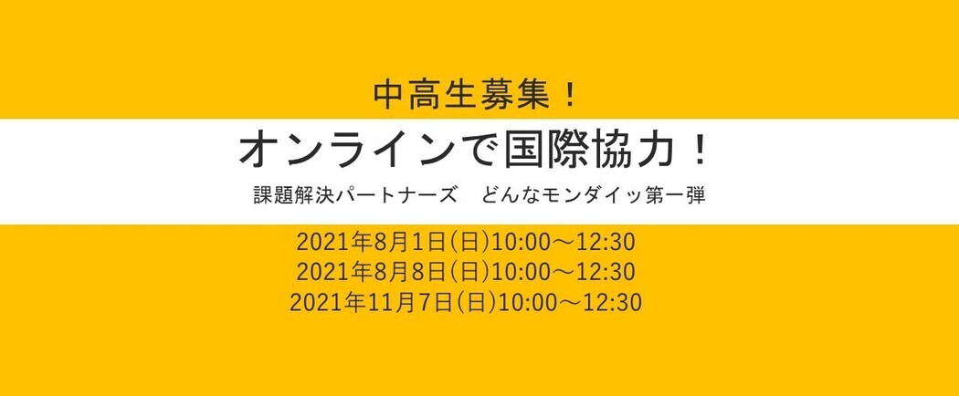 - 中高生募集!オンラインで国際協力!課題解決パートナーズ「どんなモンダイッ」第一弾