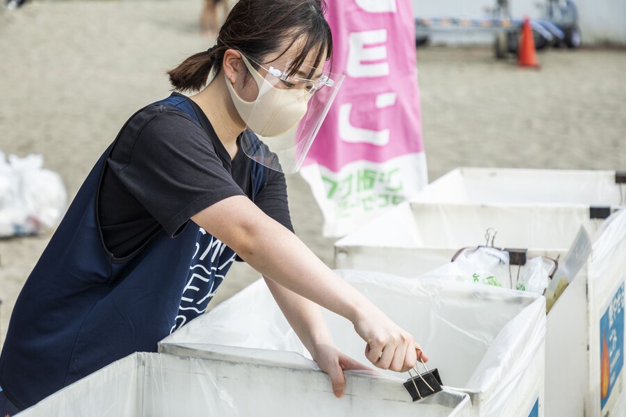 ボランティアがごみ拾いをするのではなく、来場者がポイ捨てせず自分自身の手でごみ資源の分別ができるようナビゲートするのが私たちボランティアの役割です。