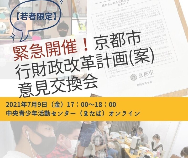 - 緊急開催!【若者限定】京都市行財政改革計画(案)意見交換会