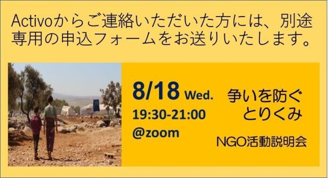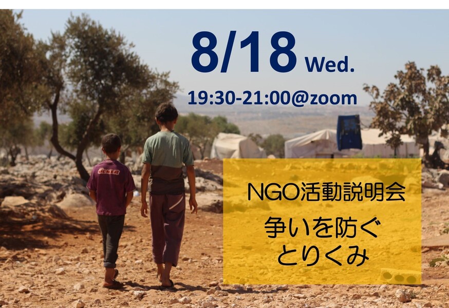 8/18(水) 19:30~@オンライン 「争いを防ぐとりくみ」NGO説明会