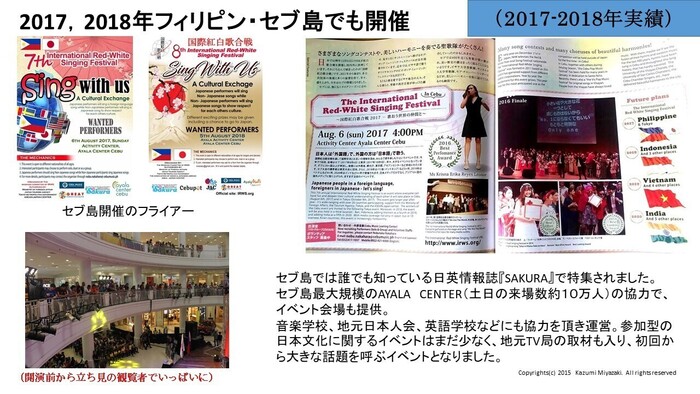 フィリピン・セブ島(2017-2018)セブの音楽学校、日本人会、フィリピン地元企業などの協力で、マスコミの取材も入り、会場は超満員に!!優勝者を日本開催に招待しました。