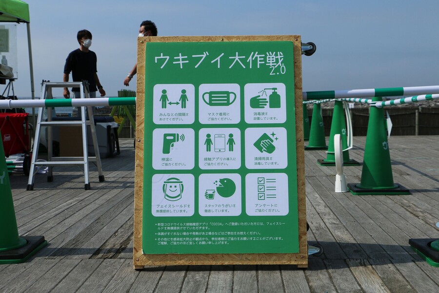 ・事前に新型コロナウイルス接触確認アプリ(COCOA)の登録いただいた方で、希望がございましたら専用窓口でフェイスシールドを無償提供させていただきます。(無くなり次第、配布終了。数に限りがあります。)・参加者全員にポケクリン(除菌ハンドジェル・2ml ずつ独⽴個包装)を無償提供し、 会場に設置してある⼿指消毒キット以外でも活動後の消毒を参加者の方々へ徹底させていただきます。
