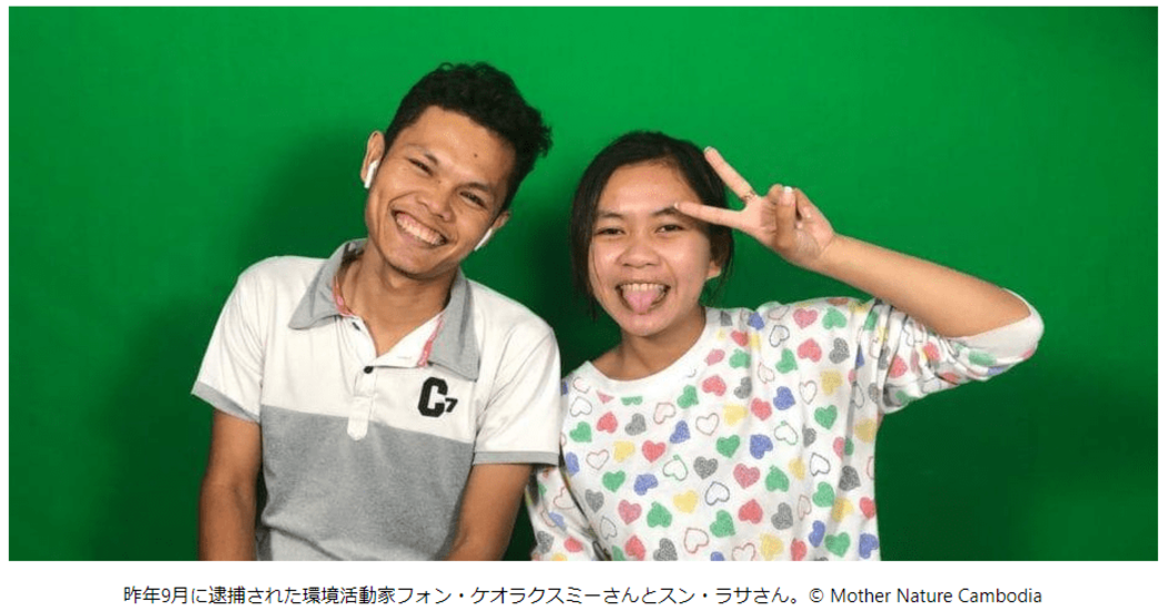 昨年9月と今年6月、6人の若い環境活動家が不法に逮捕されました。彼らは、カンボジアの貴重な天然資源を保護するために闘っている環境保護団体、マザー・ネイチャー・カンボジアのメンバーで、環境破壊をもたらしている汚職の横行を声高に批判してきたために、当局から目の敵にされてきました。