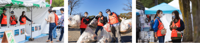 来場者が自分の手でごみ資源を分別できるようにする "ごみ資源の分別ナビゲート" や、ごみの根本削減に取り組む "リユースカップ・食器"の導入など、イベントの環境負荷を下げるための活動をボランティアと一緒に運営しています。
