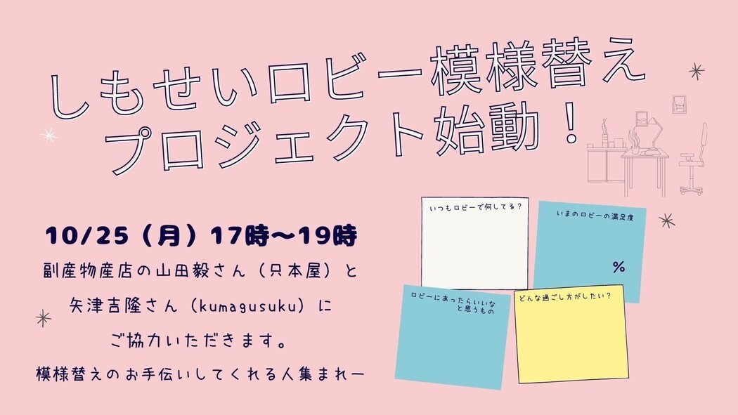 【気軽に単発ボランティア】ロビーの模様替えお手伝いしてくれる人集まれー!