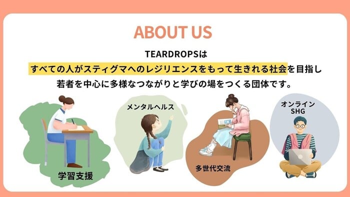 私は、そんな想いをもとにTEARDROPSという"子供の居場所づくり&大人のウェルビーイング支援"のための団体を立ち上げました。