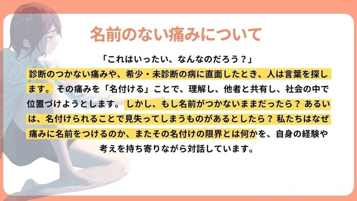 だから「名前のない痛み」に耳を澄ますことのできる団体を作ろうと思いました。