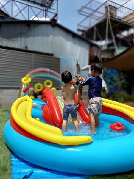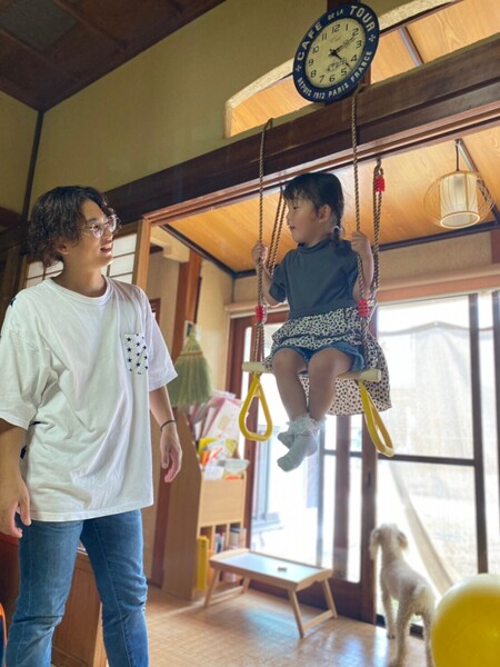 日本の古民家で時間がゆっくり流れる中、親子連れの利用者さんと関わりながら