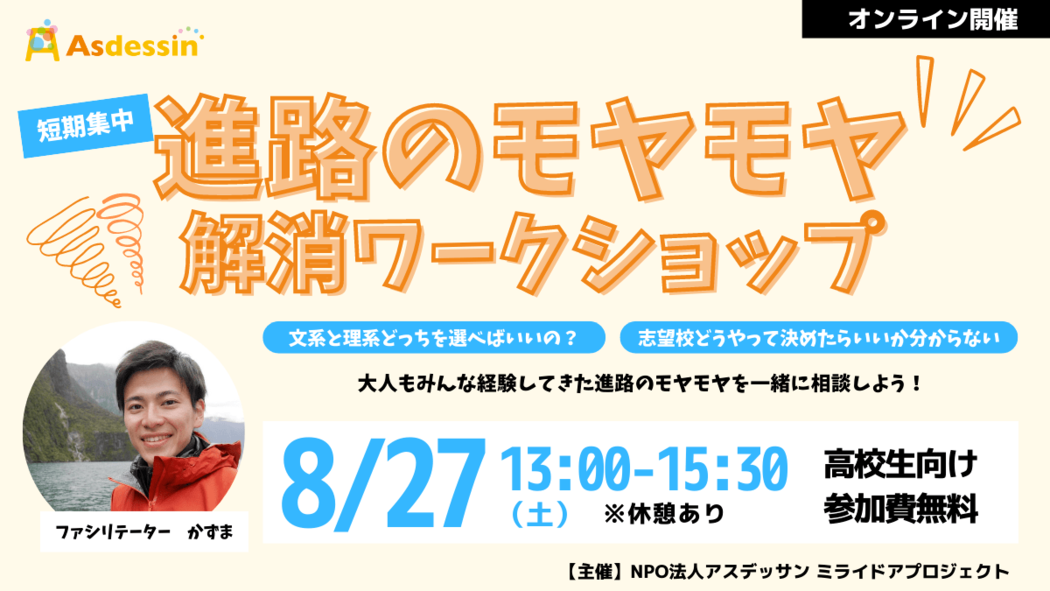 - <高校生向け/参加無料> 短期集中!進路のモヤモヤ解消ワークショップ