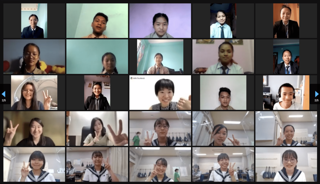 With The Worldは、世界中の学校をリアルタイムで繋ぎ、学校の授業中に海外の学校と一緒に授業を受けられる環境を中学~大学で現在創っています。1クラス約40名で(日本校20・海外校20)、お互いの国・地域のSDGsに則った行いたいテーマを生徒が選び、4人少人数グループで異なる視点を持つ他国の同世代とともにオンライン通話ツールを活用して社会問題の「原因」を探り、インタビューから「生の情報」を収集し「解決策」に働きかける機会を設けることで、学生の視野を拡げています。プログラムは、定期的且つ長期的に授業を行い、途中交換留学を設けることで、考案した実施策を現地で行う機会づくりや、世界中の同世代のチームメイトに実際に会える感動機会を設け、絆を深めながら社会性と国際性に富んだグローバルリーダーを将来に輩出しています。