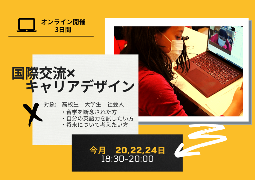 英語で海外生と、自身のキャリアデザインに取り組もう!!高校生から社会人まで対象!活動参加証明の修了証も発行可能です!!