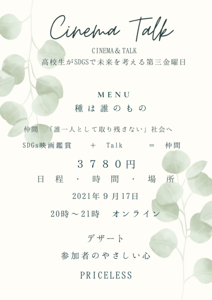 29名参加済★Cinema&Talk ★高校生がSDGsで未来を考える第三金曜日