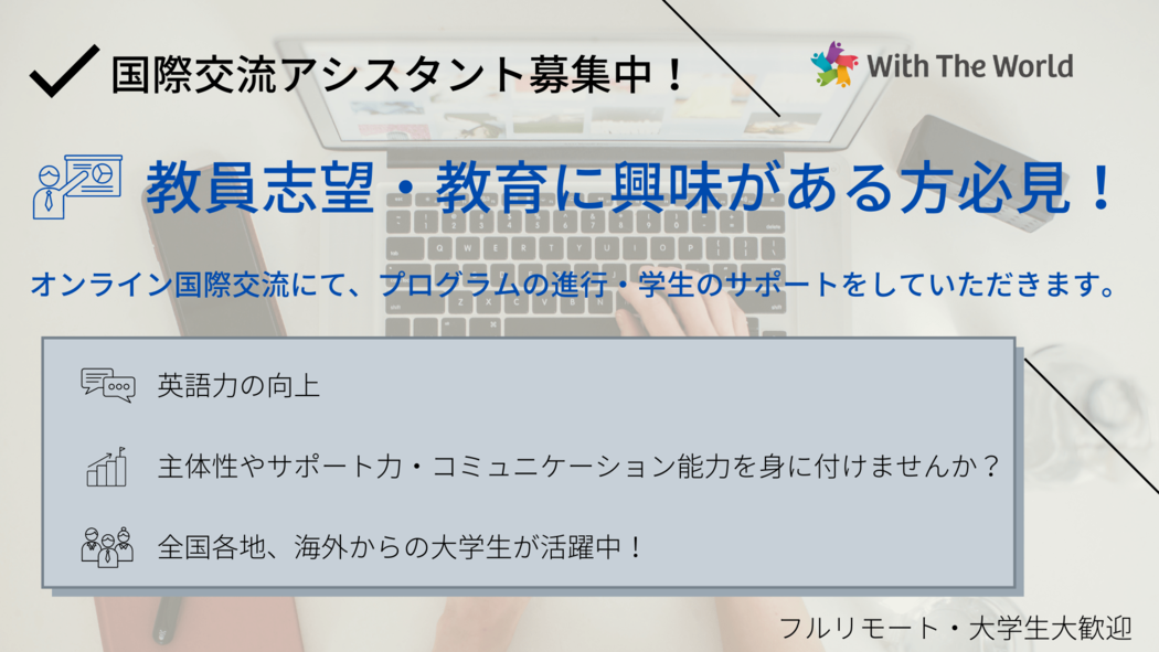 With The Worldでは好奇心旺盛で学びや経験に貪欲な学生をお待ちしています!