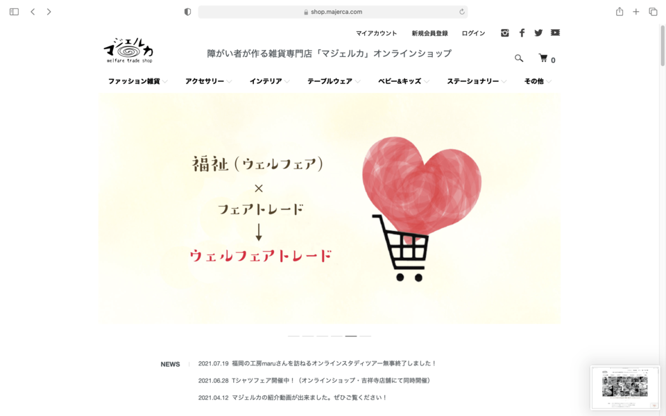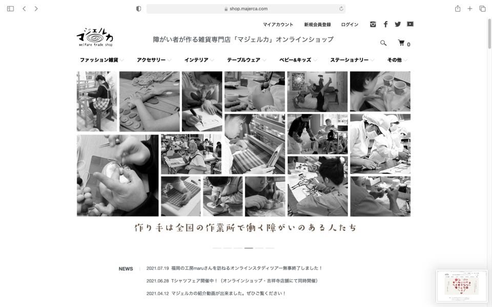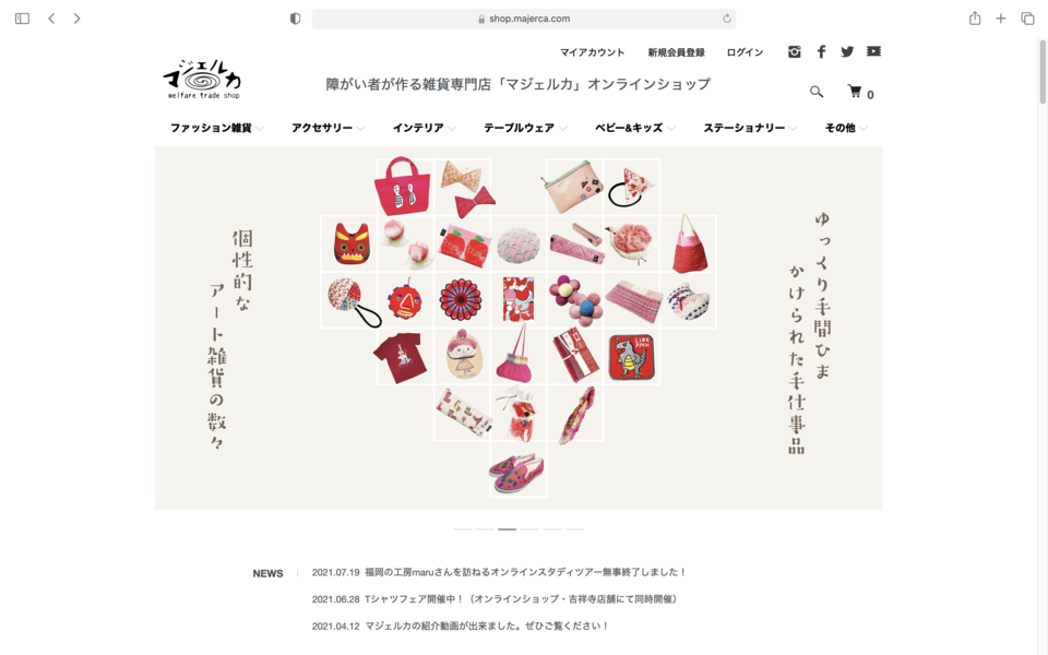 マジェルカは日本全国の障がいのある方々の作る素敵な雑貨を専門に販売している吉祥寺のセレクトショップです。