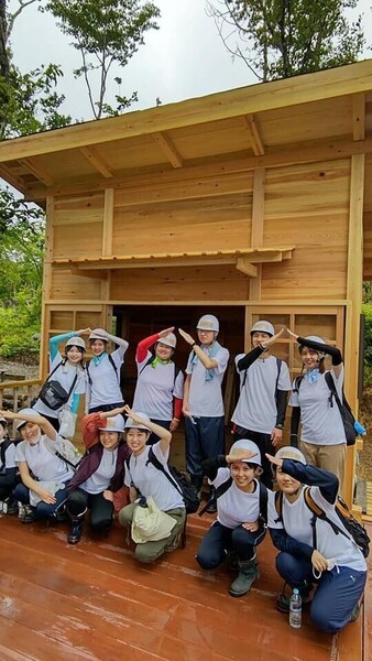 ●自助共助体験伝承プログラムとして海の見える命の森小屋創りボランティア80名と設置