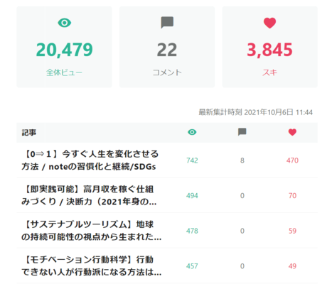 2021年10月 SNS『NOTE』学生クリエイターランキング2位/17000人中獲得