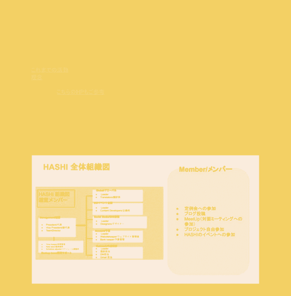2021年に注目されている国連の食糧システムサミット"UN Food Systems Summit"にむけ、世界中の若者が、環境を破壊しない持続的な食糧の生産、消費に向けて声を上げているのを見て、「私たちも、日本からもなにかできることはあるはず!」と立ち上がった学生団体です。 絶賛メンバー募集中!! 以下の組織概要より、募集している役職などをご確認ください! 組織概要HASHIとは食x環境のテーマを扱う学生団体。持続可能な食料システムの構築を目指して、普段の食スタイルから、環境を変えていくための啓発・実践活動を行う団体です。