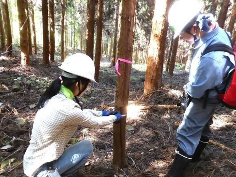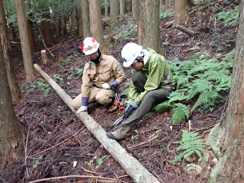 里山に実際に入って森の手入れ(間伐)などの体験を行ないます。 |