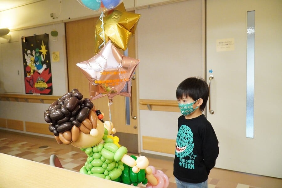 バルーンはバルーンでもプロのバルーンアーティストが作るバルーンの作品を送ることもまた、重要ではないかと思いました。バルーンの犬やお花などは見たことがあっても、これだけたくさんのバルーンでできた、お人形のバルーンはなかなか見ることができません。そんなバルーンアートの作品を送り、本物に触れてもらうことで、病院の中でも感性を育む。アートは心を豊かにしてくれます。そして元気になって、退院した時に、もっともっと多くのアートに触れたいと思ってもらえるような子どもたちへのきっかけになれればと思います。