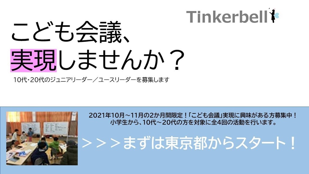 こども庁は、11月下旬にたたき台がまとまる方針で、その中に「各市町村でこどもが自由に議論するためのこども会議」が盛り込まれる可能性があります。ただ、実現に向けた課題も多くあると考えられ、ティンカーベルでも「こども会議」の実現に向けたいろんな意見交換を重ねてきました。