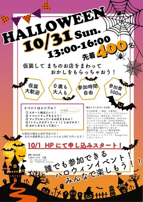 しばふハウス主催のまちでのハロウィンイベントは昨年に引き続き今年で2回目!