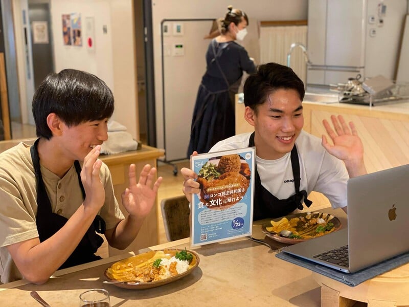 アフリカのコンゴ民主共和国の現地レストランと日本の子どもたちをオンラインで繋ぎ、コンゴの名物料理であるチキンムアンバを一緒に作り、一緒に食べました!とても暖かいイベントでした!