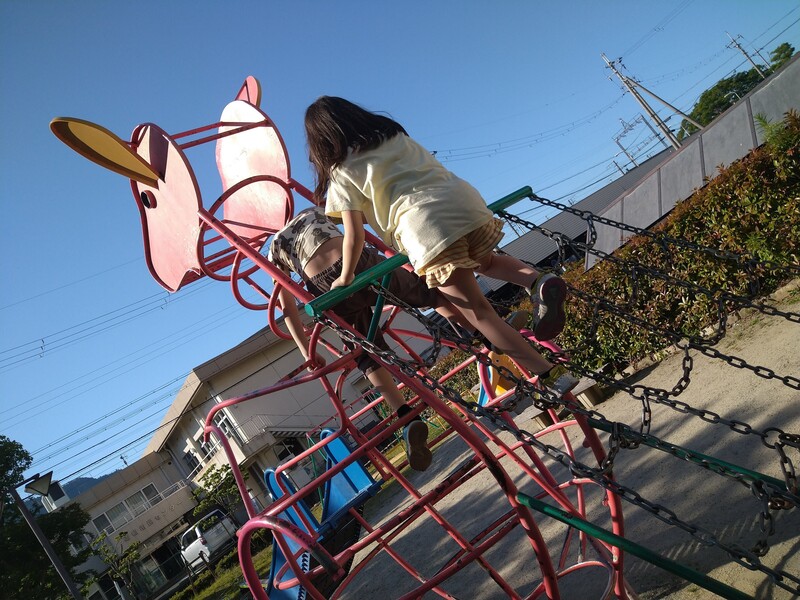 公園遊びに走っていくこともあれば、アニメに熱中することもあり…。
