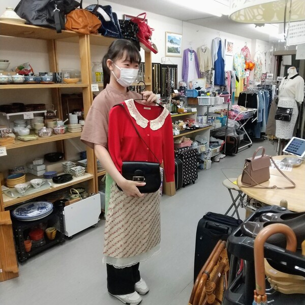 古着コーディネートは初めてでしたが、大学生のボランティアの方が親切にアドバイスくれて、とても良い感じの古着に出会えて、良かったです。(高校2年生)