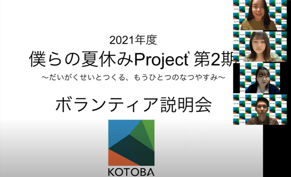 2011年度から毎年8月に行なっている僕らの夏休みProjectと並ぶ中心的なプロジェクトです。