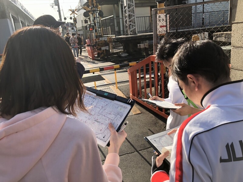 チェックポイントごとの得点が書かれた地図を手に、3~4人のグループで、まちにくりだします。